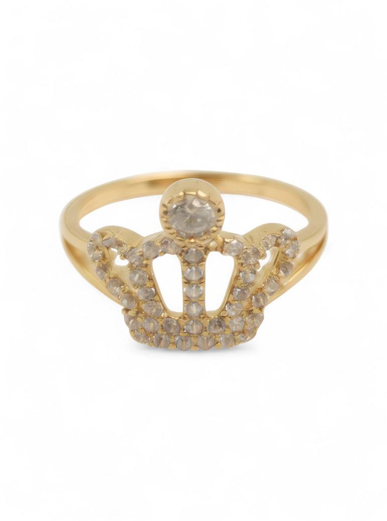 טבעת כתר מרשימה | שיבוץ זירקונים | זהב צהוב 14 קראט | דגם עדי
