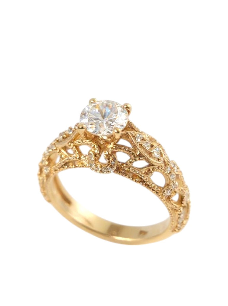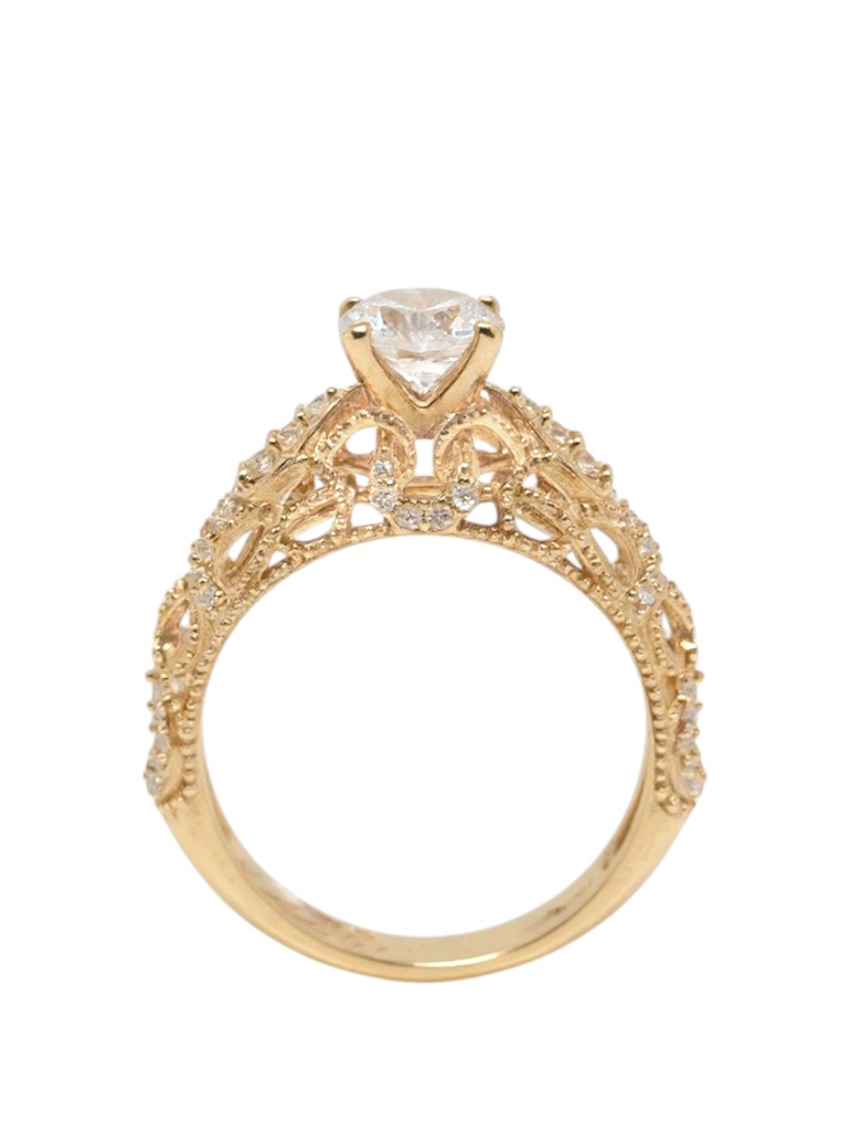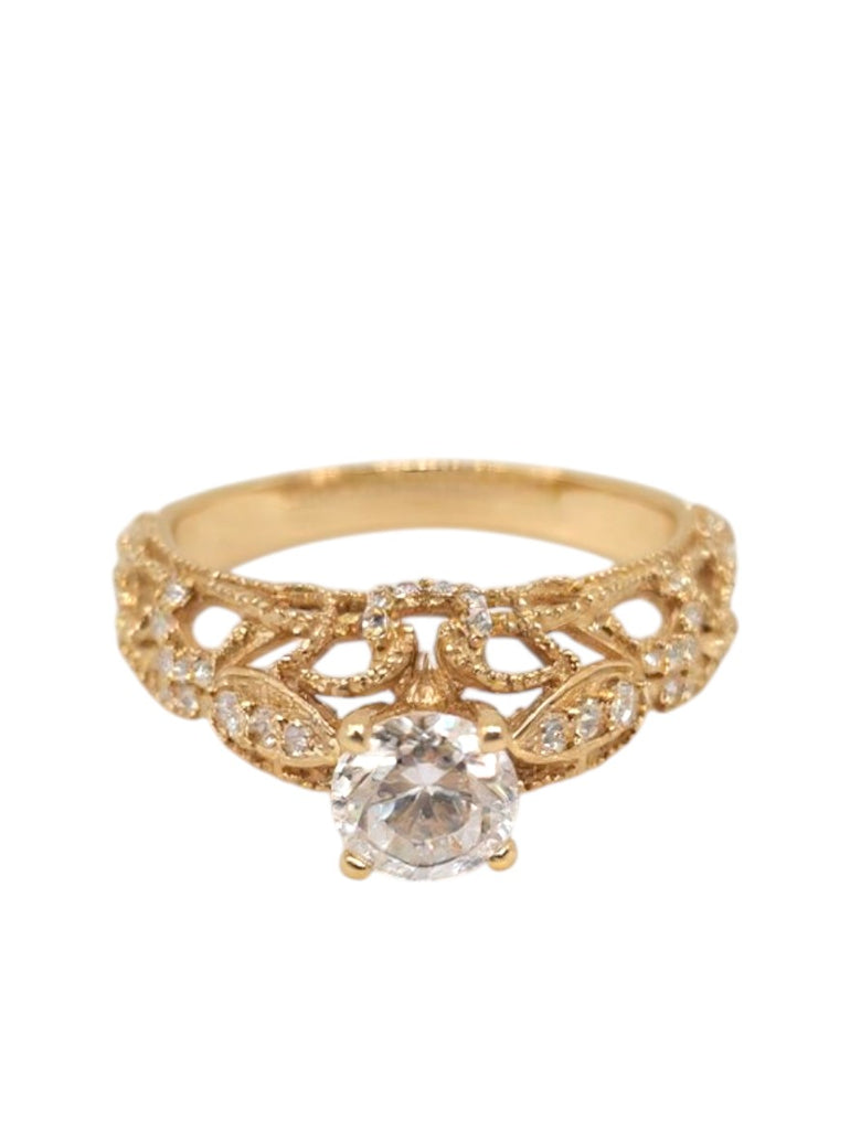טבעת סוליטר בעיצוב תחרה | זהב צהוב 14 קראט | דגם רונית