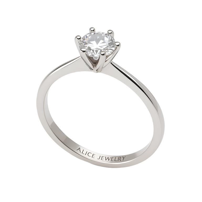 טבעת סוליטר מרשימה ואלגנטית בעיצוב נקי, עם אבן זירקון עגולה גדולה המשובצת ב־6 שיניים מוגבהות המעניקות נוכחות וביטחון לאבן המרכזית. גוף הטבעת עשוי זהב לבן 14 קראט בגימור מבריק וחלק, בעובי עדין ונוח. העיצוב הגבוה מאפשר לאור לחדור אל האבן בזוויות שונות ולמקסם את הברק.