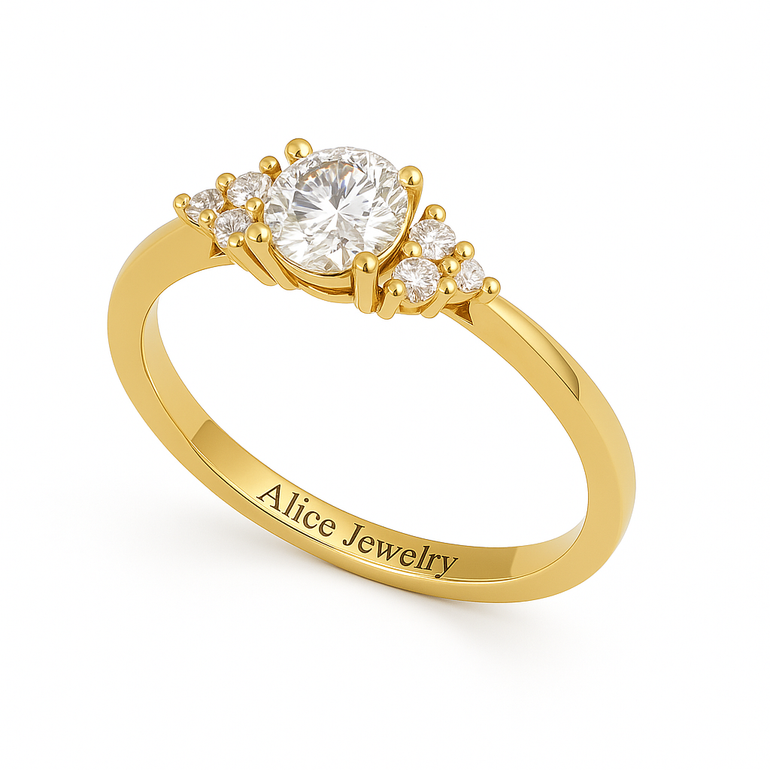 במרכזה משובצת אבן זירקון עגולה גדולה, הנתמכת ב־4 שיניים זהב עדינות ובטוחות.