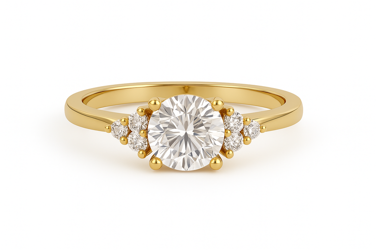 טבעת פרח קלאסי | משובצת זירקון | זהב צהוב 14 קראט | דגם נעמי