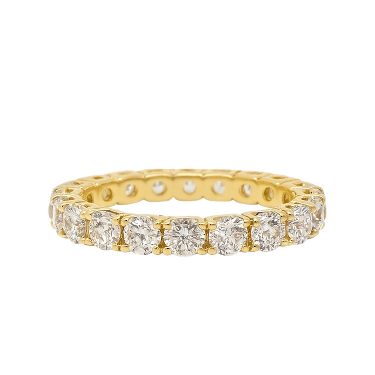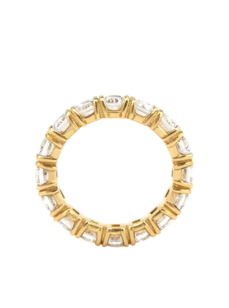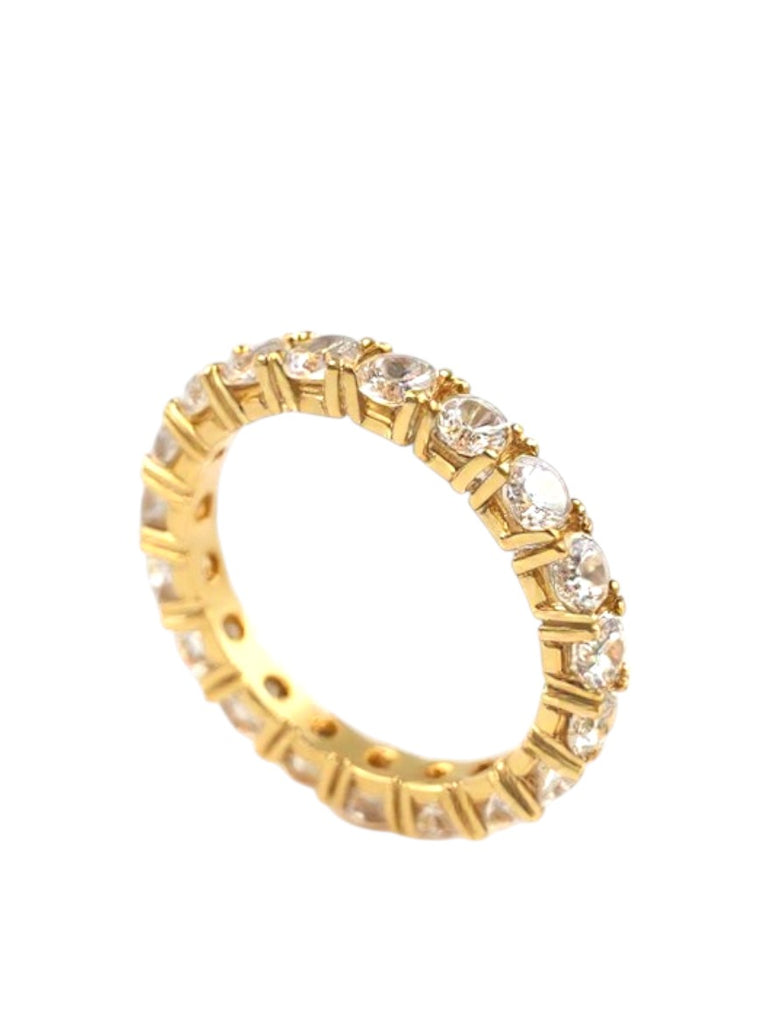 טבעת בעיצוב עשיר ומרשים, עם שיבוץ זירקונים עגולים לכל אורכה – 360 מעלות של ברק יוקרתי ונוכחות בוהקת. כל אבן משובצת בתוך תושבת זהב פתוחה ומעוצבת, המדגישה את האבן מכל זווית ומאפשרת חדירת אור מרבית. המבנה האחיד והמדויק של השיבוץ מעניק לטבעת מראה סימטרי וזוהר במיוחד. זהו דגם אידיאלי לשילוב עם טבעת עיקרית או כטבעת חיזוק חגיגית בפני עצמה.