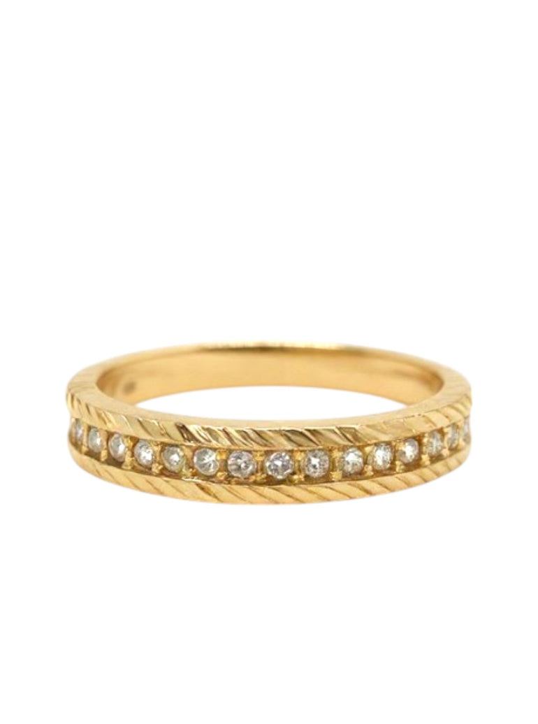 טבעת זהב בעיצוב אלגנטי ונקי, עם שורת זירקונים עגולים המשובצים בתעלה שקועה במרכז גוף הטבעת. השיבוץ השקוע מעניק מראה חלק ואחיד המשתלב בהרמוניה בגוף הטבעת, תוך שמירה על ברק עדין וזוהר מחושב. גימור מבריק וקווים מדויקים מעניקים לטבעת מראה מודרני אך קלאסי – מושלמת כשכבת חיזוק לצד טבעת עיקרית או כטבעת בפני עצמה.