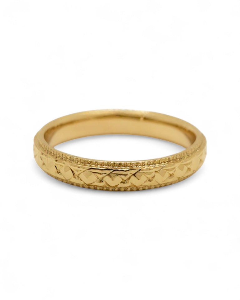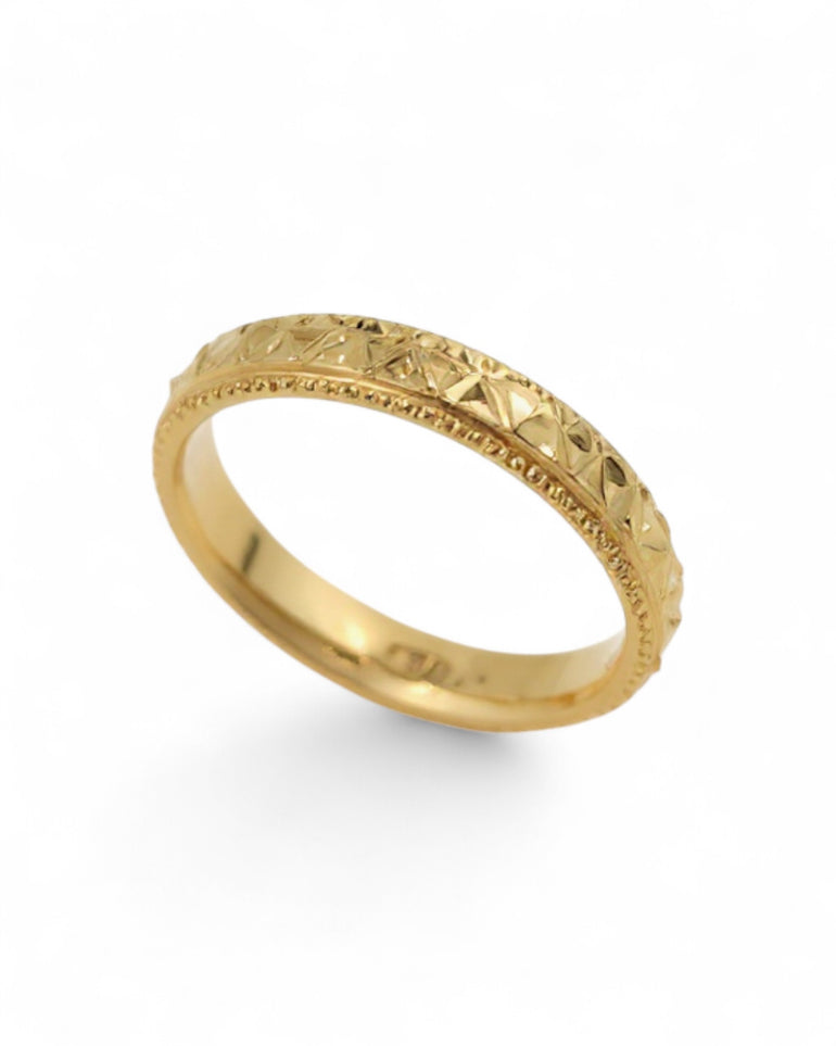 • סגנון | טבעת נישואין דקה עם עיטור לייזר גאומטרי