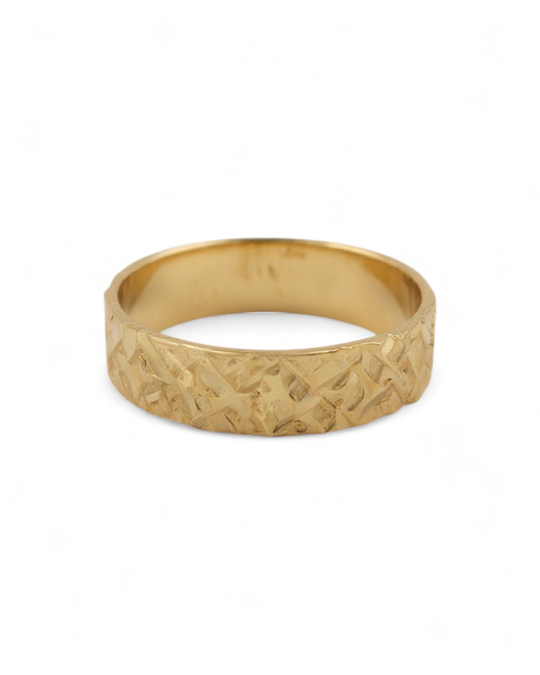 טבעת נישואין לנשים | טקסטורה גאומטרית שבורה | זהב צהוב 14 קראט | דגם מאיה