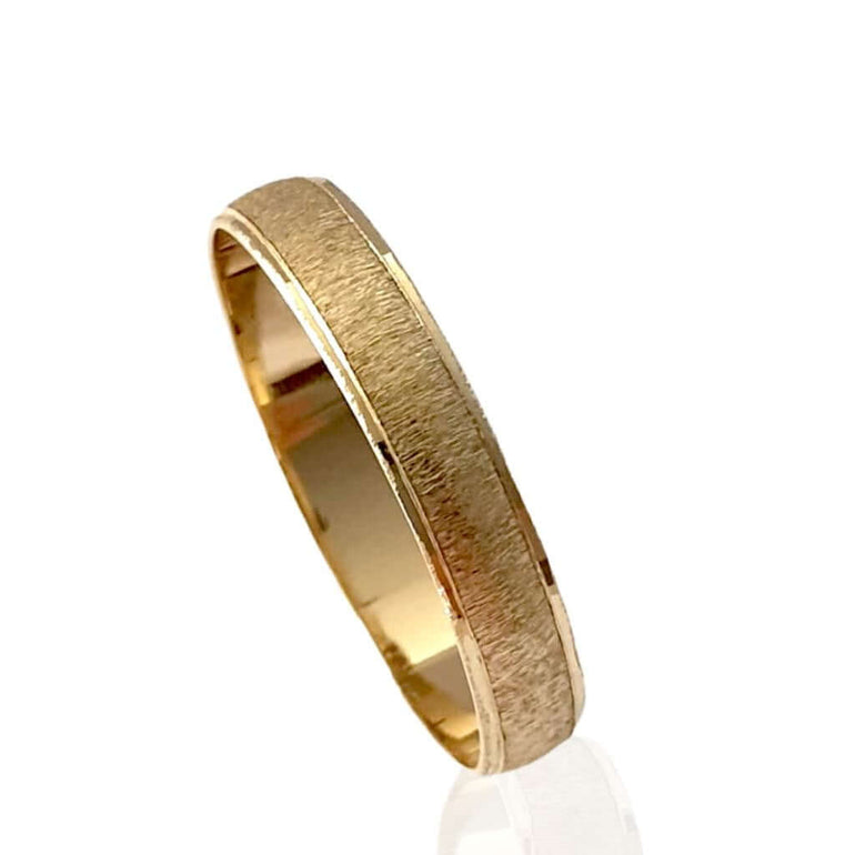 טבעת נישואין לגבר וגם לאישה זהב צהוב 14k מט חיספוס קנט חריטה דניאל