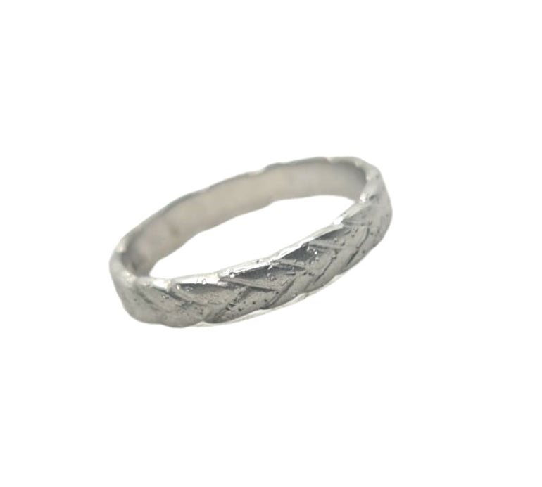 טבעת נישואין בצורת צמה חרוטה | זהב לבן 14 קראט | דגם ליה