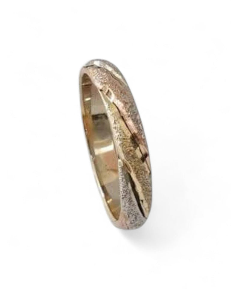 טבעת נישואין לנשים זהב 14k שלושה צבעים אלכסונים מט עדין יהלי