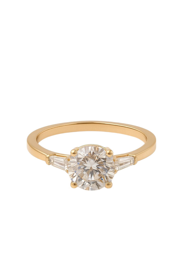 טבעת סוליטר עם שיבוץ צדדי באבני באגט מלוטשות | זהב צהוב 14 קראט | דגם מיכל