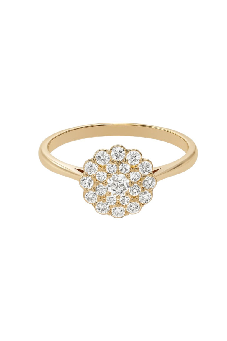 טבעת פרח משובצת בעיצוב עגול עשיר | שיבוץ זירקונים | זהב צהוב 14 קראט | דגם רונית