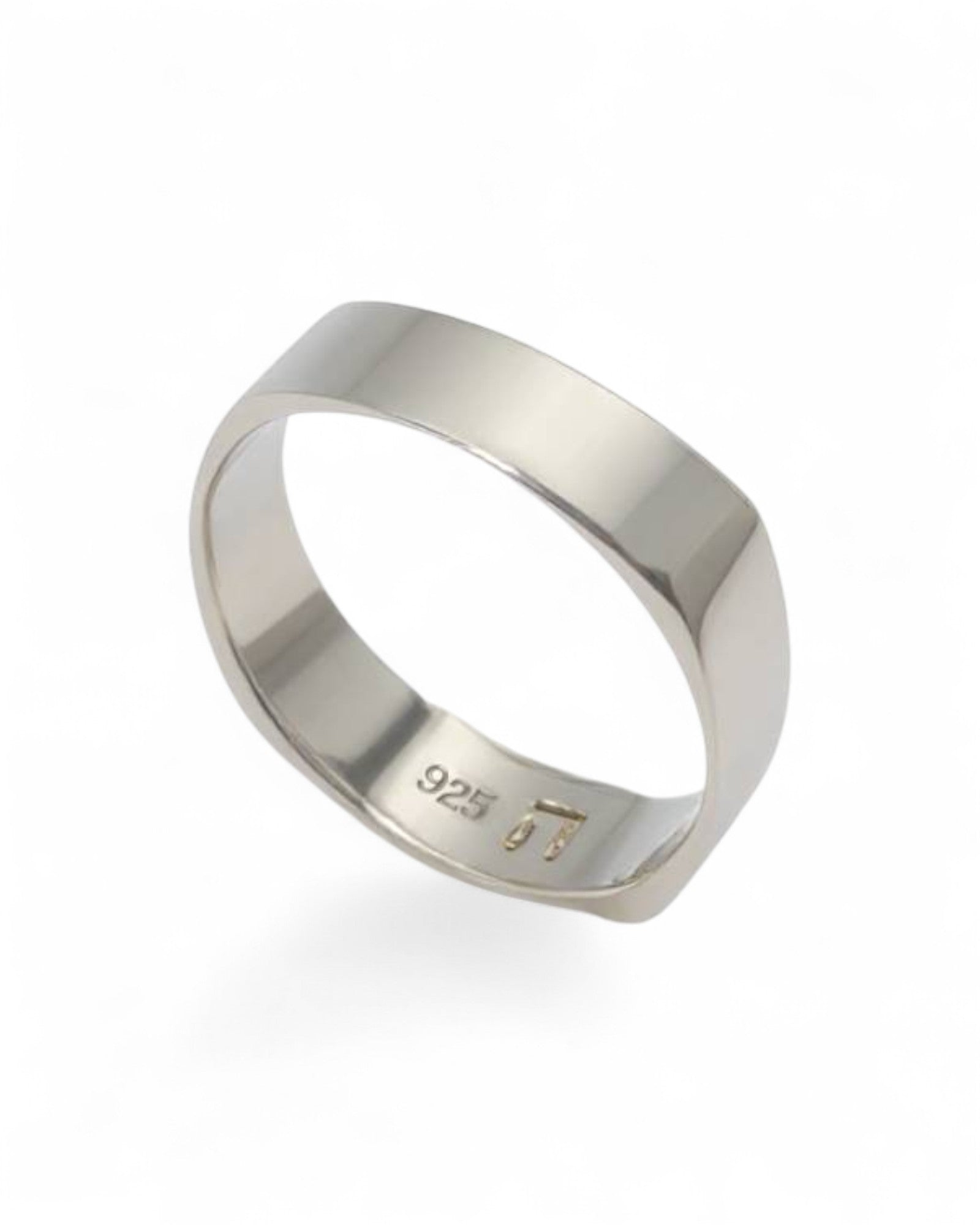 טבעת בן איש חי רחבה | מרובע מבחוץ ועגול מבפנים | כסף טהור | חריטת אות ה'