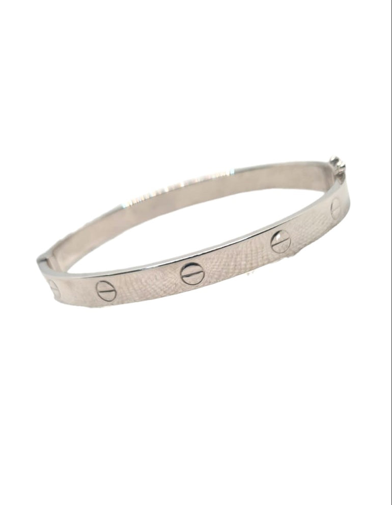 צמיד קשיח ברגים | זהב לבן 14 קראט | ניפתח בעזרת מברג נילווה | דגם שקד