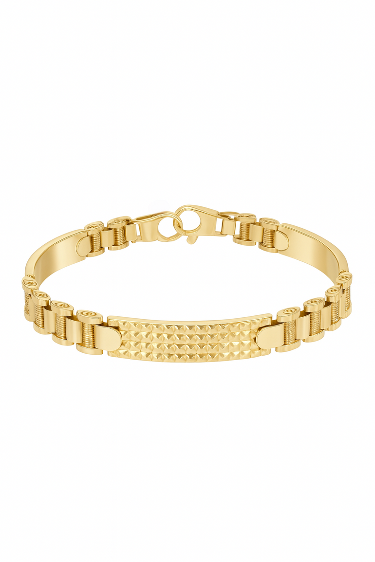 צמיד זהב לגבר בעיצוב מכני ייחודי | טקסטורה גאומטרית מעוטרת | זהב צהוב 14 קראט | דגם אלי