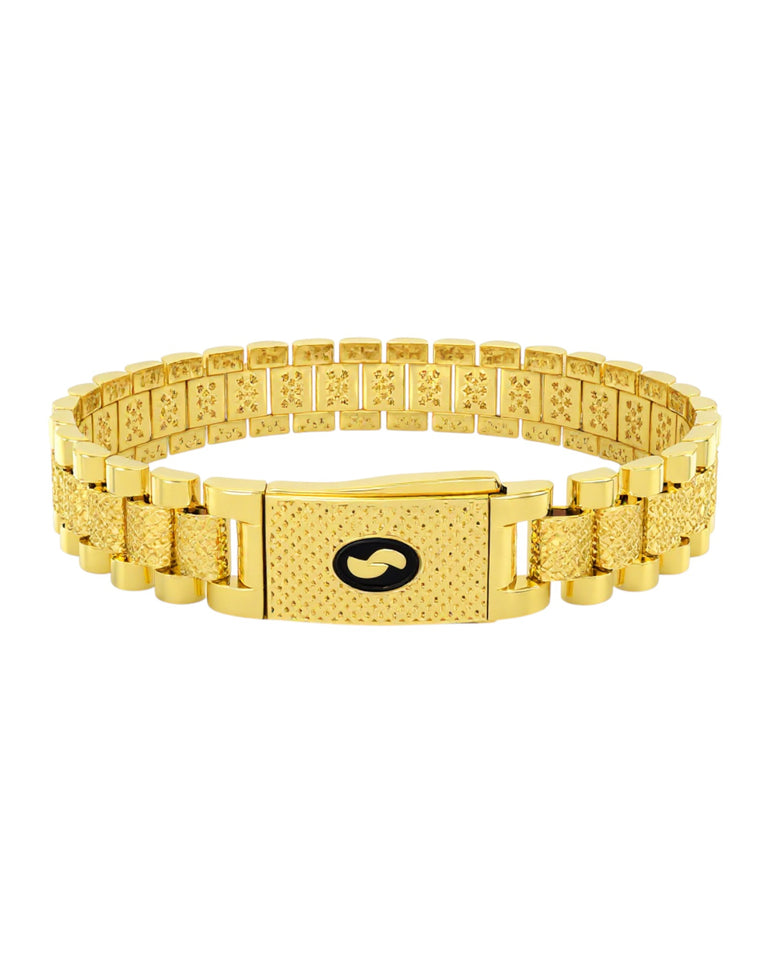 לצמיד מרקם ייחודי היוצר משחק אור מרשים על פני הזהב, והוא משדר עוצמה, נוכחות וסטייל גברי מושלם.