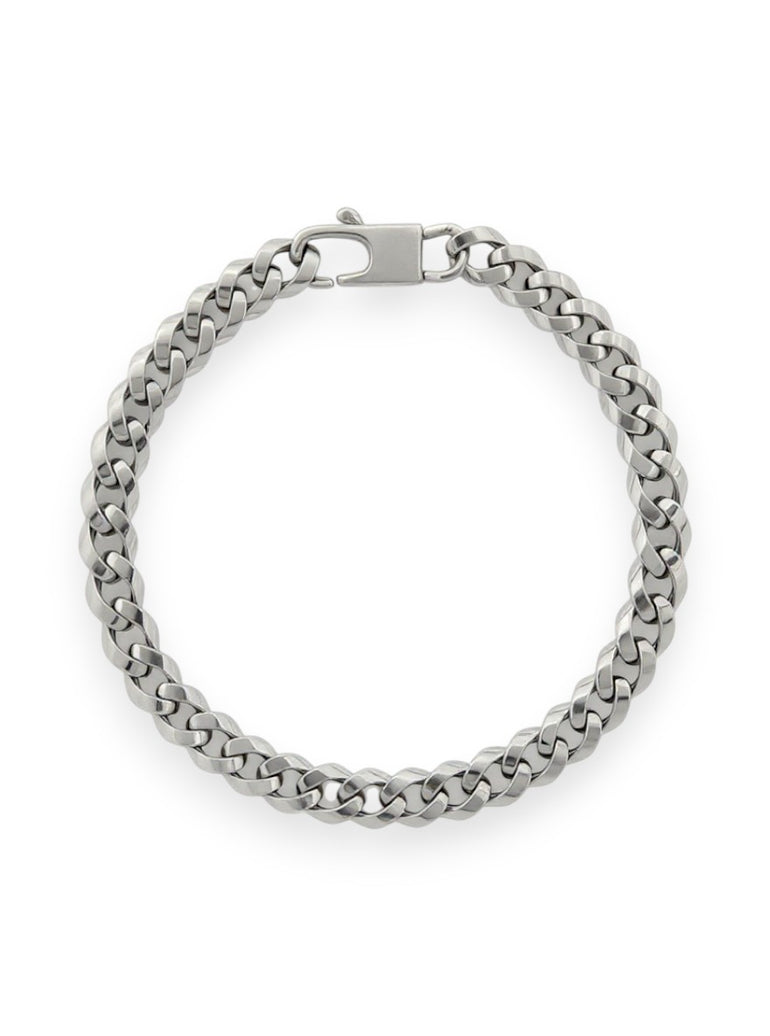 צמיד קובהן רחב לגבר | חוליות עבות מלוטשות | זהב לבן 14 קראט | דגם רם