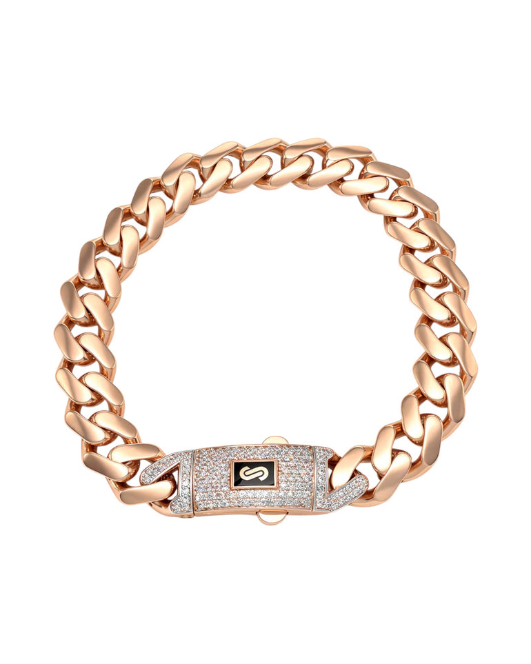 צמיד זהב לגבר | מונקו צ׳ין | חוליות חלקות עם סוגר משובץ | זהב רוז 14 קראט | דגם דניאל