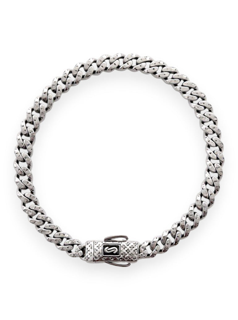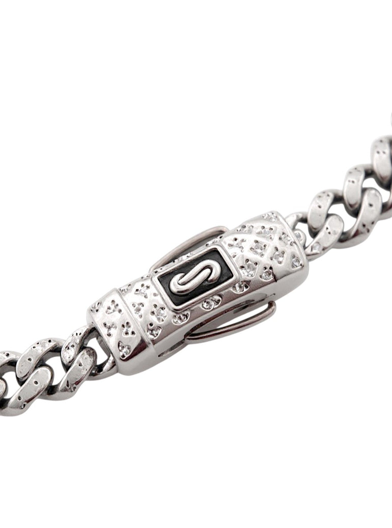 צמיד מונקו צ'ין יוקרתי, עשוי זהב לבן 14 קראט במראה מרשים ומודרני. החוליות המעוגלות מלוטשות בקפידה ליצירת ברק עז ומראה אלגנטי, והסוגר המעוצב עם חריטת הדגל של החברה מוסיף נגיעה ייחודית של עוצמה וסטייל גברי.