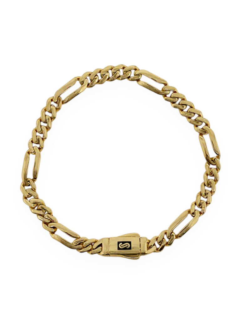 צמיד מונקו צ'ין יוקרתי בעיצוב קלאסי ומיוחד, עשוי זהב צהוב 14 קראט בגימור מבריק. עיצוב החוליות משלב בין חוליות קצרות ומעוגלות לחוליות מוארכות, ליצירת מראה דינמי ואלגנטי. הסוגר המעוצב מוסיף טאץ' מודרני ומבטיח נעילה בטוחה ונוחה לשימוש יומיומי.