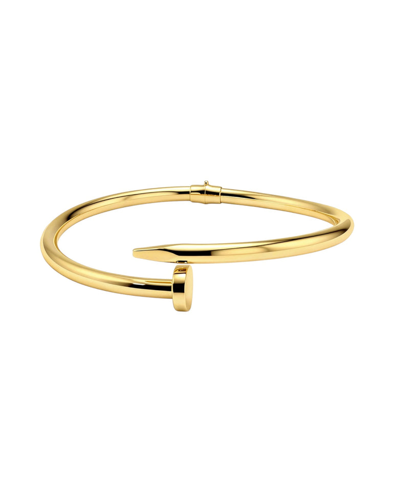 צמיד מסמר בעיצוב פתוח ונקי, קווים מעוגלים עם נוכחות מודרנית ואלגנטית. מעניק מראה ייחודי שמשלב סטייל עדין עם טאץ' יוקרתי, מתאים ליום-יום וגם להופעות מיוחדות.