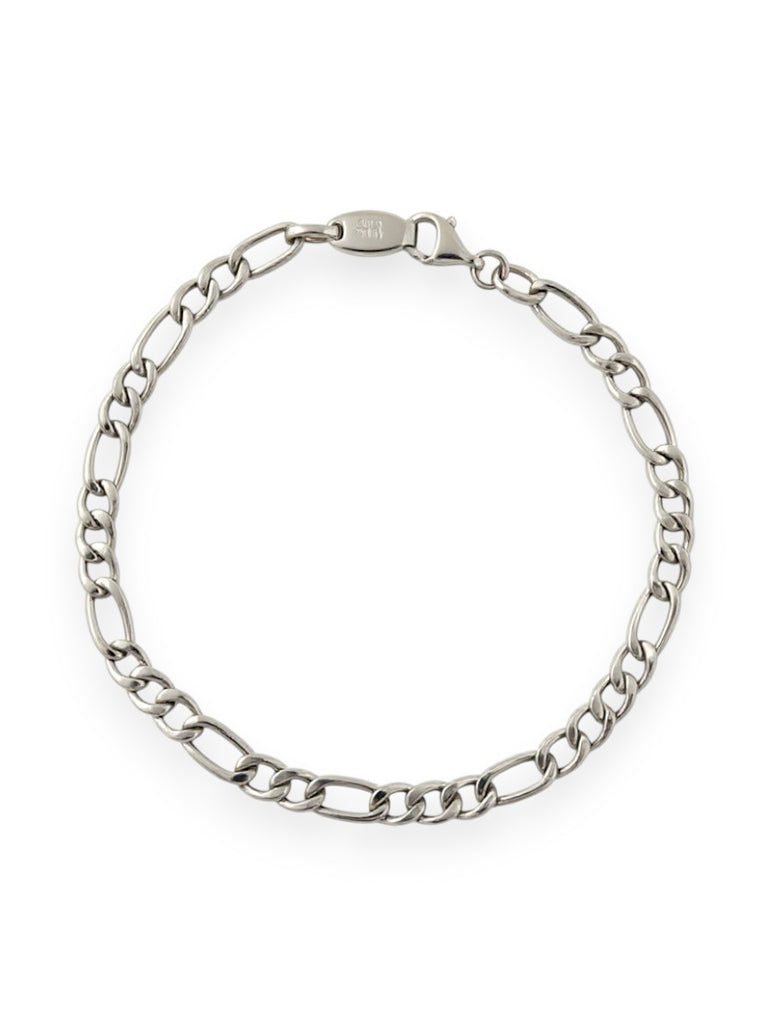 צמיד פיגארו דק לגבר | חוליות ארוכות וקטנות לסירוגין | זהב לבן 14 קראט | דגם עידן