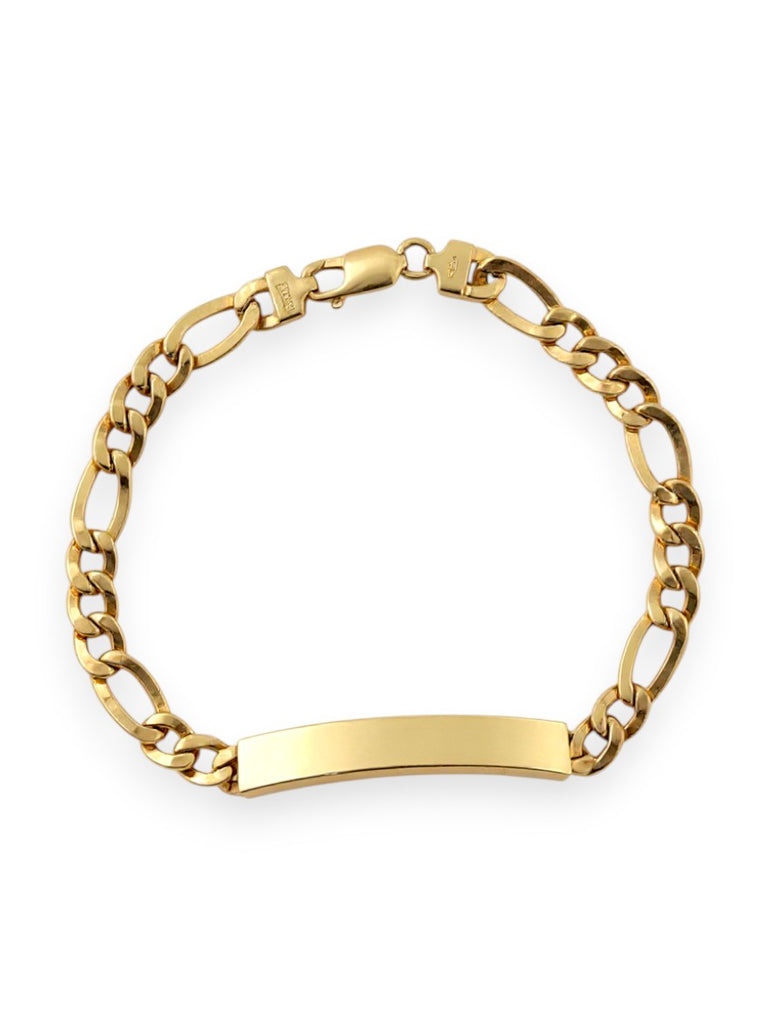 צמיד פלטה לגבר בעיצוב קלאסי ומדויק מזהב צהוב 14 קראט. העיצוב מבוסס על חוליות פיגארו רחבות ומלוטשות, המשדרות עוצמה ונוכחות, לצד פלטת זהב חלקה שמוסיפה קו נקי ומסודר. הצמיד יוצר מראה אלגנטי עם טוויסט מודרני – מתאים גם לשימוש יומיומי וגם למראה ערב מוקפד.
