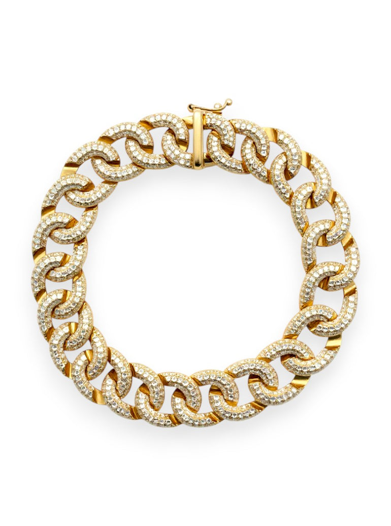 צמיד קובה לינק משובץ | שיבוץ זירקונים | זהב צהוב 14 קראט | דגם דניאל