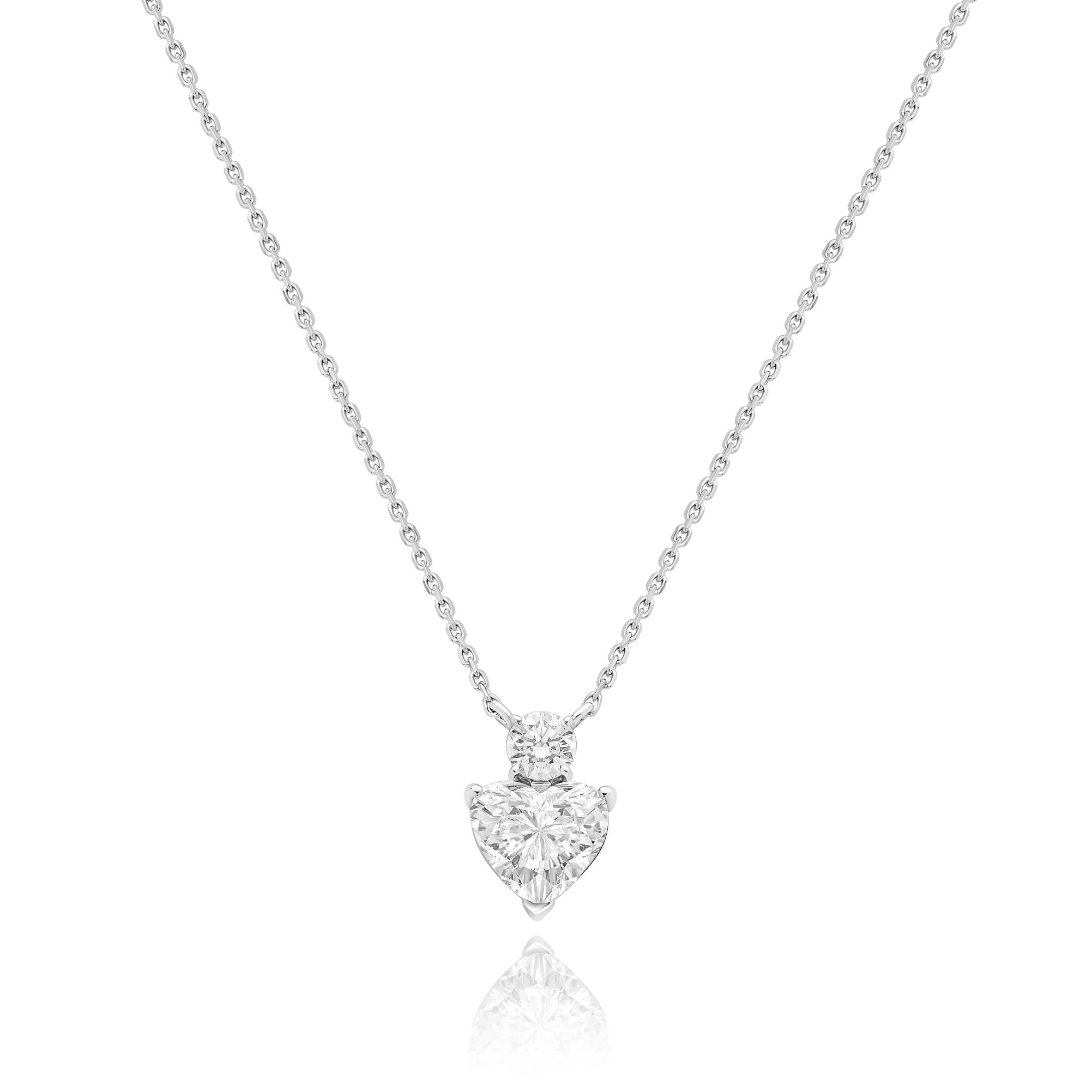 שרשרת תליון יהלומים בעיצוב לב זוהר | יהלומי מעבדה CVD | גודל 1.430 קראט | זהב לבן 14 קראט | דגם אור