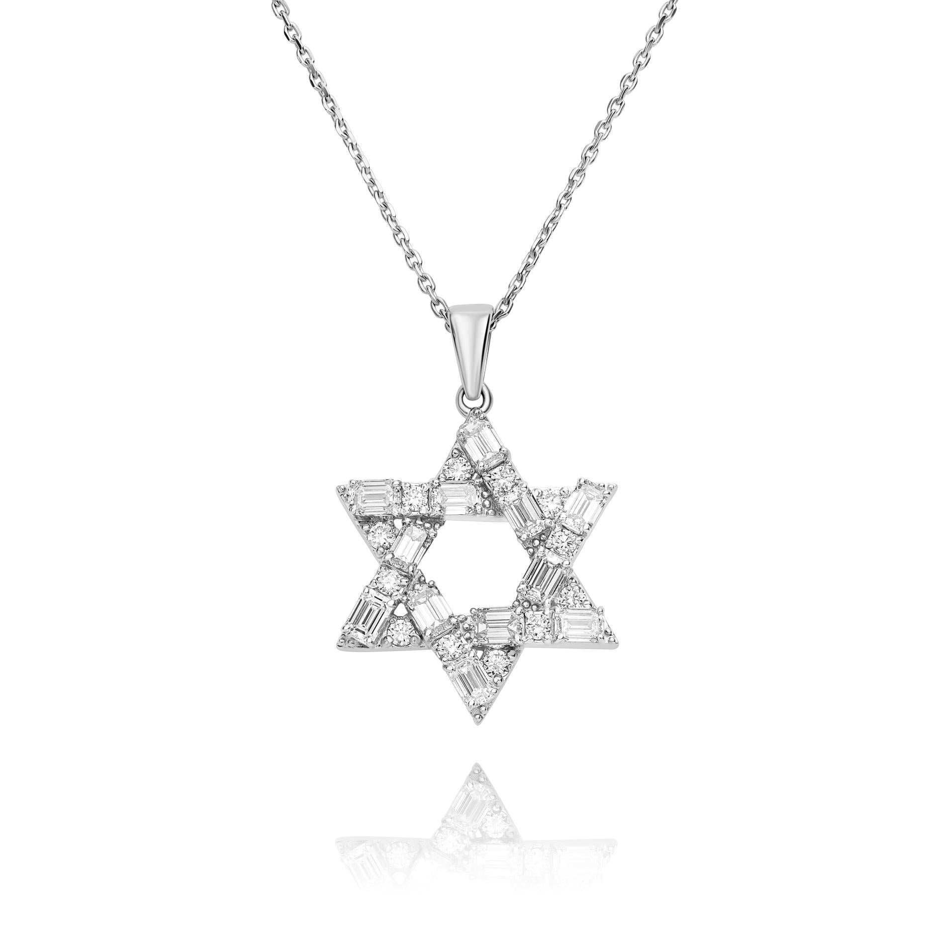 שרשרת תליון מגן דוד יוקרתי | יהלומי מעבדה CVD | גודל 1.278 קראט | זהב לבן 14 קראט | דגם תהל