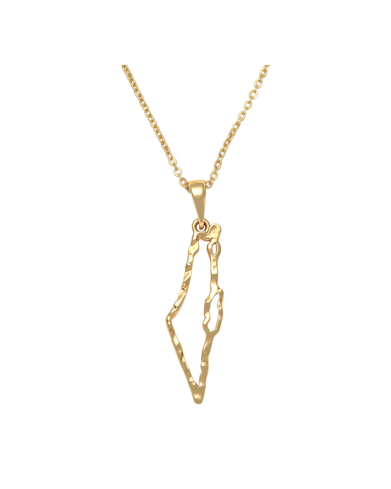 שרשרת עדינה עם תליון ארץ ישראל בעיצוב מינימליסטי ומרוקע, המציג את קווי המתאר של מפת ישראל בגימור טקסטורי ייחודי שמעניק אופי ומשמעות.