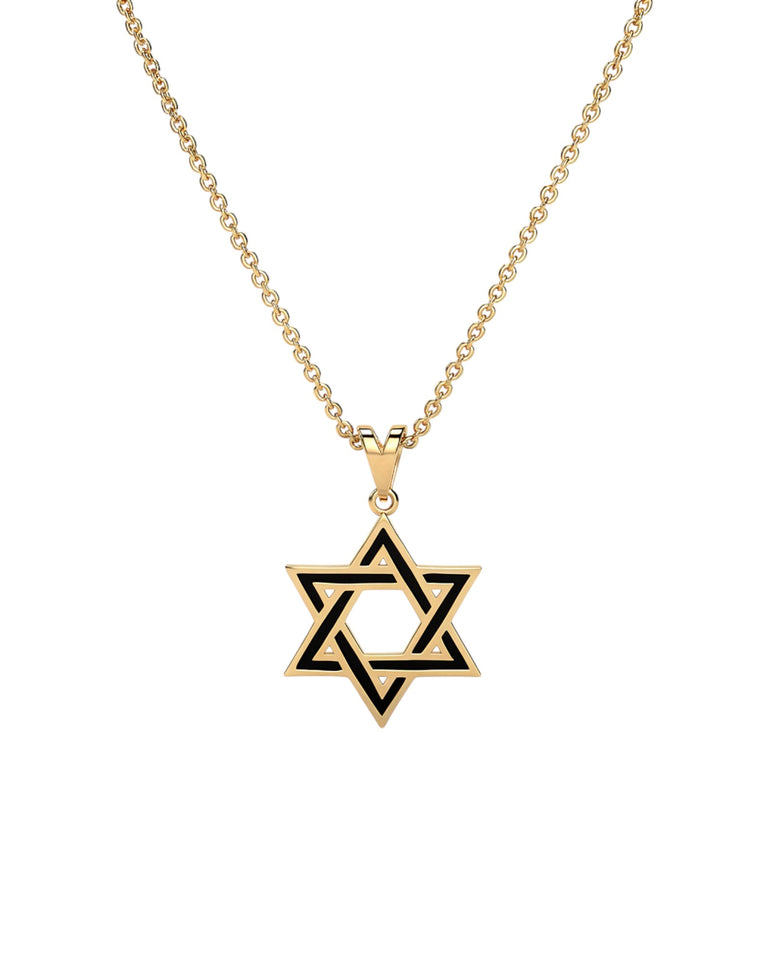 שרשרת אלגנטית עם תליון מגן דוד בעיצוב נקי ומודרני, הכולל שילוב אמייל שחור המדגיש את קווי המתאר ויוצר קונטרסט אלגנטי.