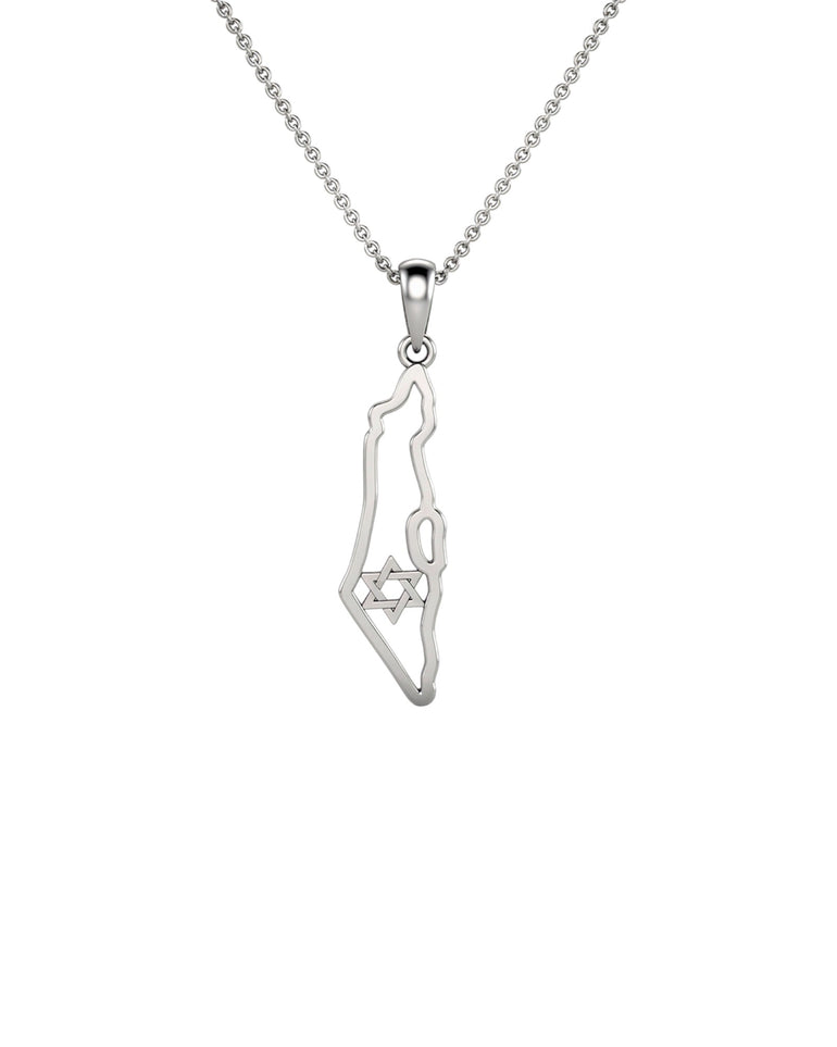 שרשרת עם תליון | מפת ישראל עם מגן דוד | זהב לבן 14 קראט | דגם יונתן