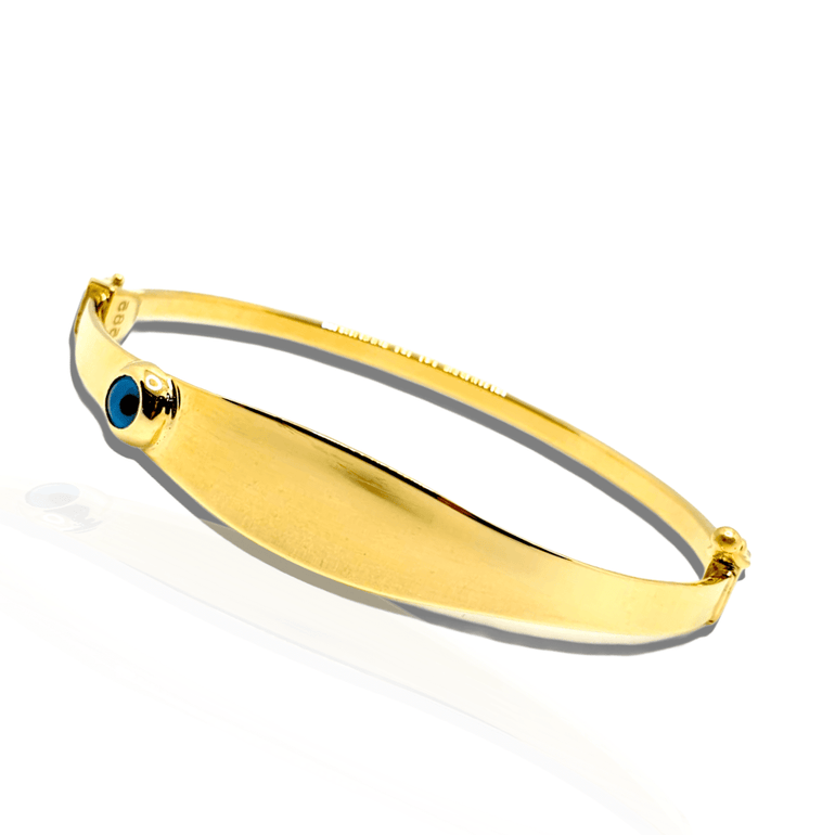 צמיד ילדים קשיח אובלי | חריטת שם על הפלטה | זהב צהוב 14 קראט | דגם אביחי