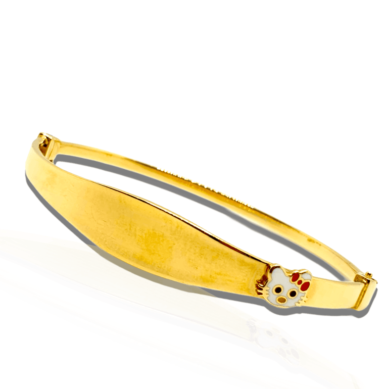 צמיד קשיח ילדים | קשיח אובלי | חריטת שם | זהב צהוב 14 קראט | דגם אדל
