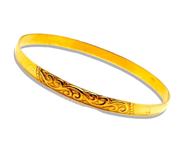 צמיד מרוקאי לילדים | מעוטר ציורי תחרה וחצי חלק מבריק | זהב צהוב 14 קראט | דגם אושר