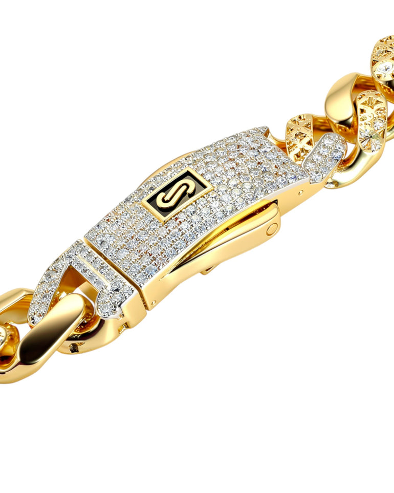 צמיד מונקו צ'ין מיוחד בעיצובו, הצמיד בצורת חוליות משולב חלק וחיתוכי לייזר מבריק ונוצץ וסוגר הצמיד משובץ באבני זרקון . הצמיד חוליות  עשוי מזהב 14 קראט - זהב צהוב. הצמיד מעניק מראה קלאסי ועדין,  תכשיט שישדרג לך את המראה! מתאים לכל  אירוע!