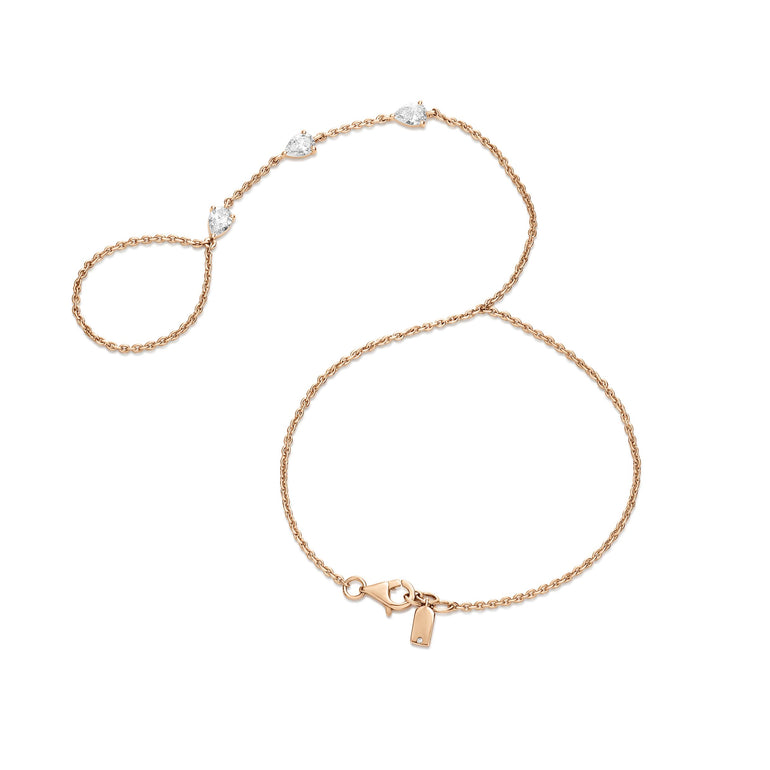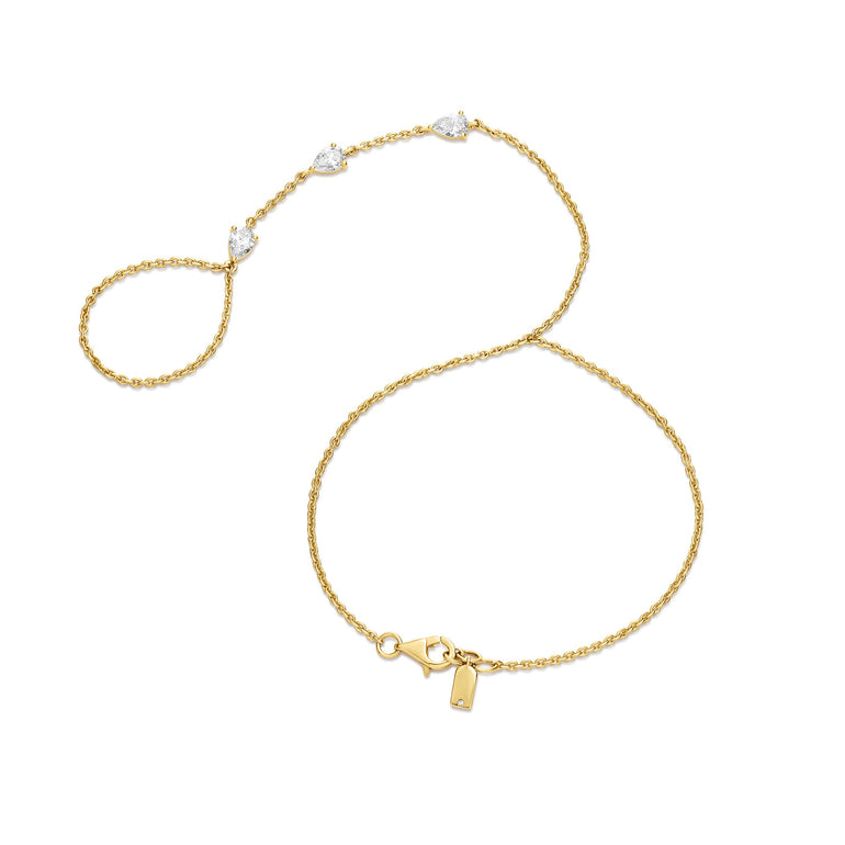 צמיד עדין ואלגנטי בעיצוב נשי ונקי, משובץ שלושה יהלומי מעבדה CVD בחיתוך לב המשולבים לאורך השרשרת ויוצרים מראה רך וזורם. השילוב בין זהב לבן 14 קראט ליהלומים בדרגת צבע EF ובניקיון VVS מעניק לצמיד ברק מרשים ונוכחות אלגנטית שמתאימה לשימוש יומיומי וגם לאירועים מיוחדים.