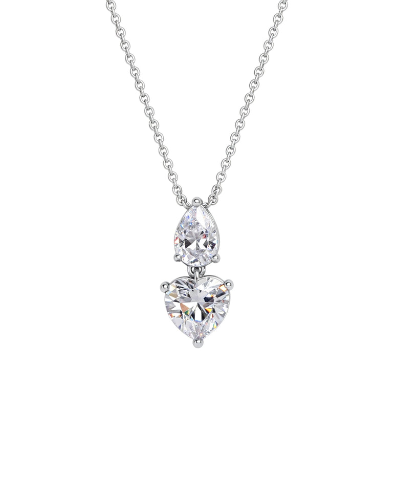 שרשרת אלגנטית עם תליון כפול בעיצוב אנכי, המשלב זירקון בחיתוך טיפה מעל זירקון בצורת לב. השילוב בין שתי הצורות יוצר מראה עדין ומרשים עם נוכחות אלגנטית, מתאים לשימוש יומיומי, לאירועים ולמתנה מיוחדת.
