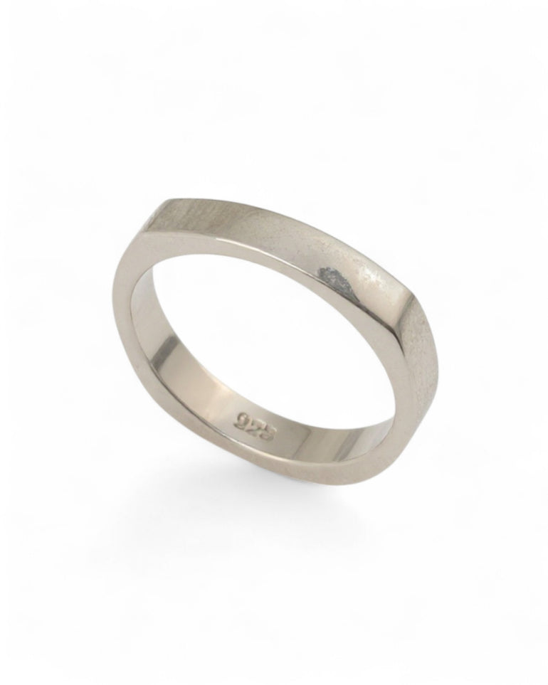 טבעת בן איש חי | מרובע מבחוץ ועגול מבפנים | כסף טהור | חריטת אות ה'