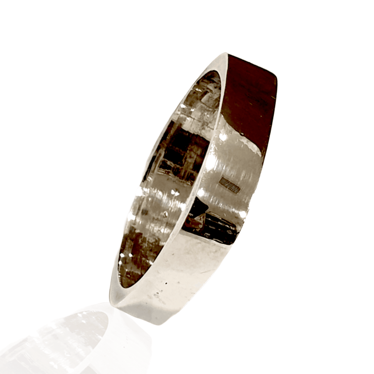 טבעת נישואין מכסף טהור מרובעת חוץ עגול פנים - הבן איש חי