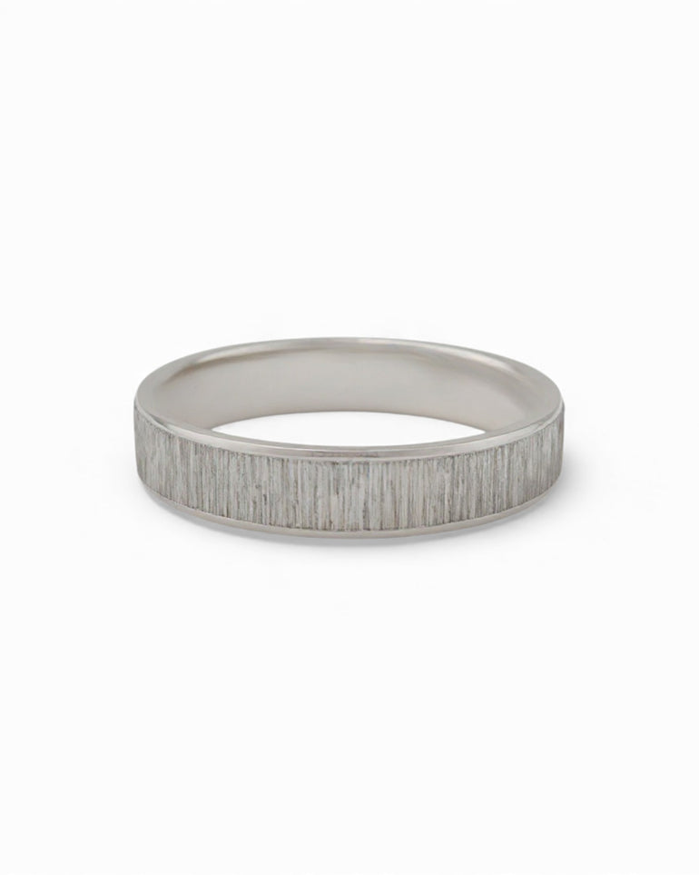 טבעת נישואין לגבר | טקסטורה קווים מחוספסת | זהב לבן 14 קראט | דגם שניר