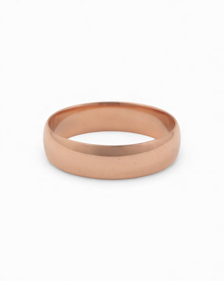 טבעת נישואין בעלת מראה אלגנטי ונקי, בעיצוב חלק לחלוטין ללא טקסטורות—קו קלאסי שתמיד נשאר רלוונטי. הגוון החמים של זהב הרוז מעניק לטבעת עומק וייחודיות, תוך שמירה על מראה יוקרתי וצנוע. הטבעת נוחה במיוחד ללבישה יומיומית בזכות מבנה פנימי מעוגל ומלוטש.